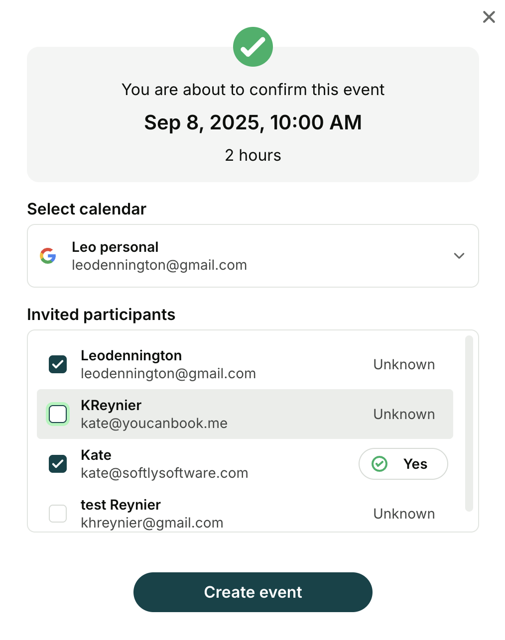 The people selected will get a calendar event and a confirmation email: