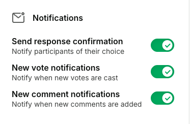 You can use the poll Notification settings to keep everyone up to date on the status of your poll. Scroll down to see the notifications you and your participants will get.